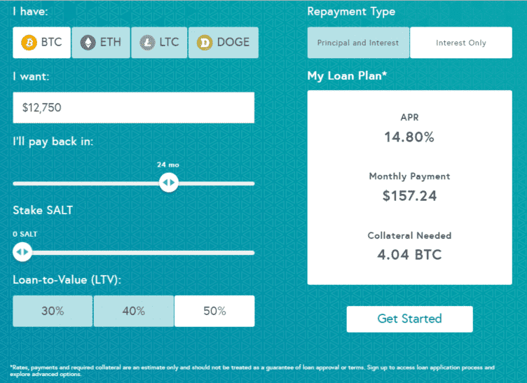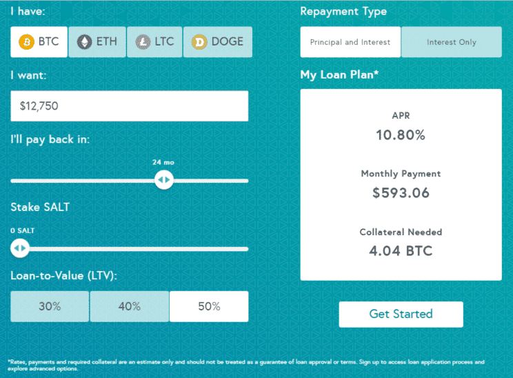 Another competitor in the collateral-coin loan space is Colorado-based SALT Lending.com. Similar loan application, approval, collateral transfer, and margin call protocols apply at this firm. Loans are available to qualified borrowers in the US, Brazil, Switzerland, New Zealand, UK, and several other nations. SALT offers borrowers the option of choosing 30, 40, or 50 percent LTV ratios. For risk-averse borrowers, choosing a 30 or 40 percent LTV ratio may make more sense than a 50 percent version.